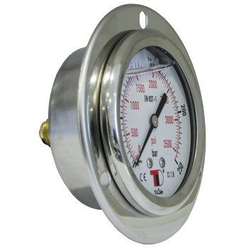 Glycerínový manometer s priemerom DN 63 a zadným pripojením, závit 1/4" BSP. Glycerínová náplň tlmí vibrácie a tlakové rázy, čím zaručuje stabilnejší odčítaný údaj v hydraulických systémoch.