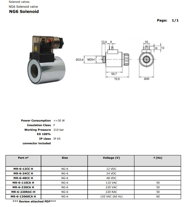 NG6 solenoidová cievka MR-6-24CC H