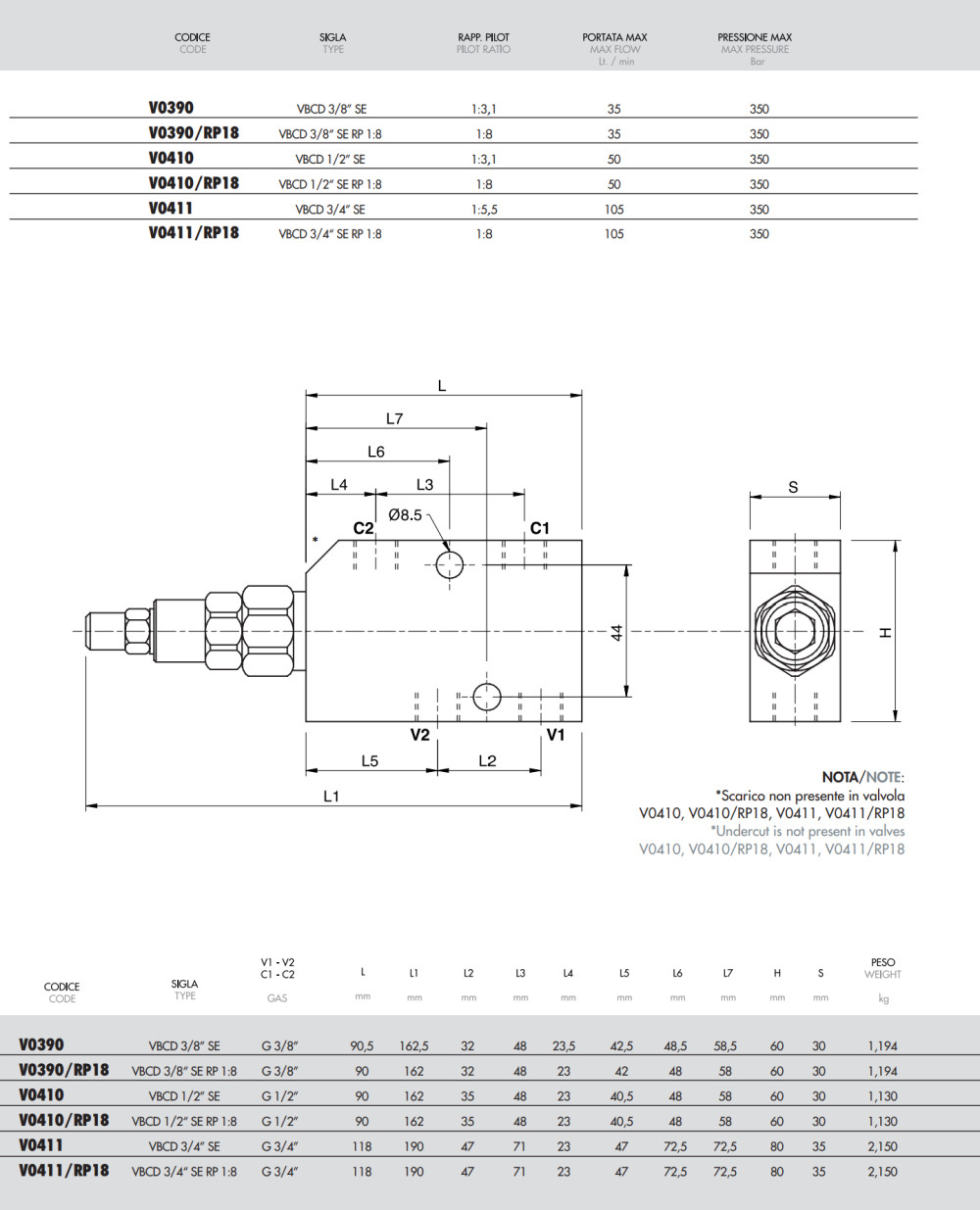 Typ V0410 VBCD 1/2" SE jednosmerný brzdiaci ventil overcenter s držaním záťaže slúži na reguláciu pohybu hydraulických aktuátorov a bezpečné udržiavanie záťaže. Ventil zabezpečuje kontrolované spúšťanie záťaže a zabraňuje nekontrolovanému pohybu vplyvom vlastnej hmotnosti záťaže a kavitácii aktuátora. In-line vyhotovenie umožňuje jednoduchú montáž.