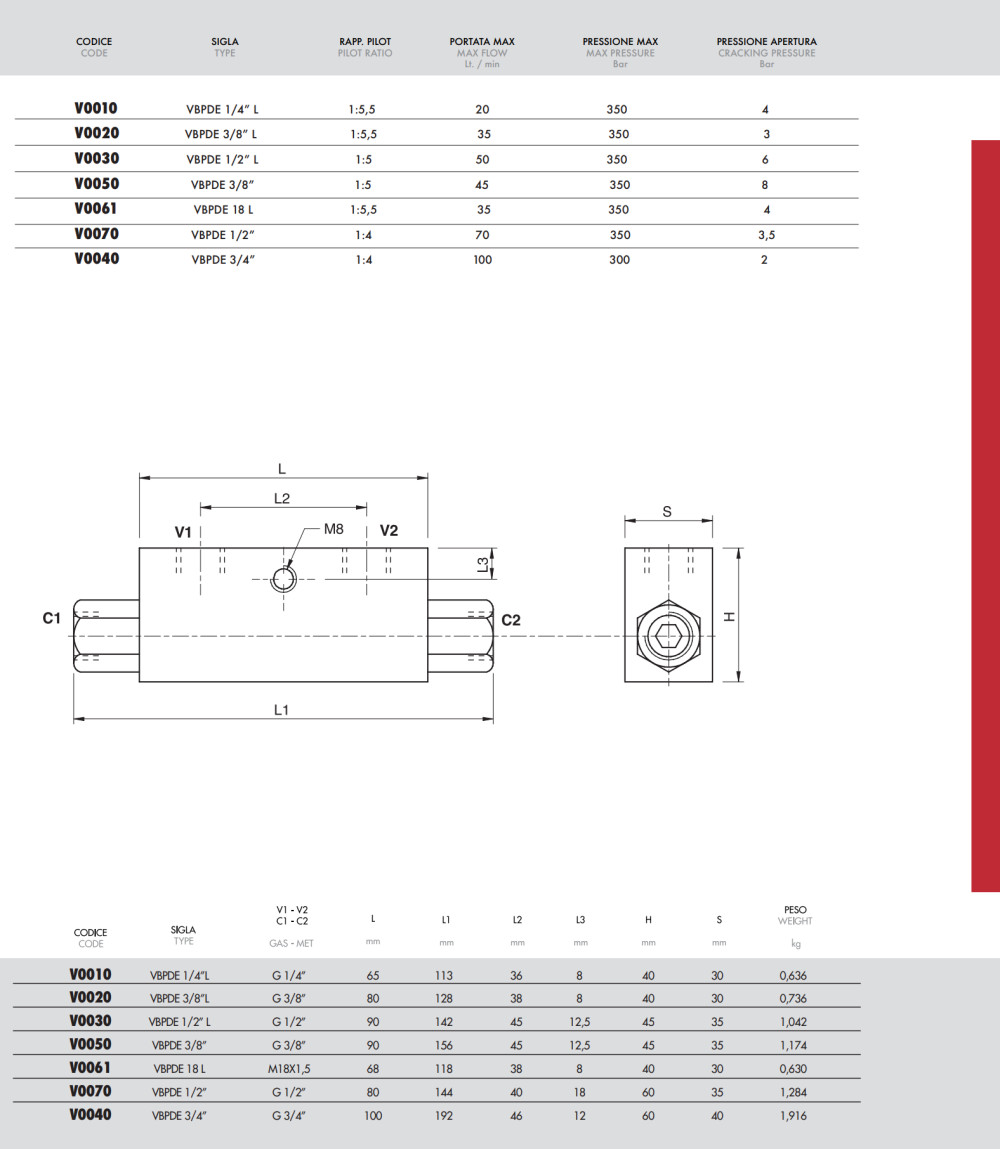 - Typ: VBPDE – dvojitý pilotne ovládaný spätný ventil