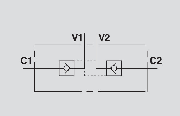 Typ V0020 VBPDE 3/8" dvojitý pilotne ovládaný spätný ventil slúži na spoľahlivé zablokovanie hydraulických valcov v oboch smeroch pohybu. Ventil zabezpečuje voľný prietok v jednom smere, pričom opačný smer blokuje dovtedy, kým nie je privedený pilotný tlak. Spoľahlivé riešenie pre aplikácie s držaním polohy.