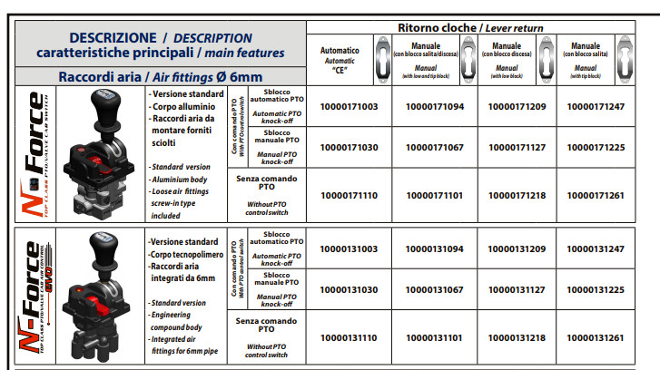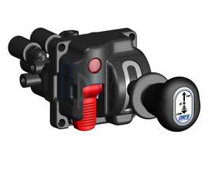 Kabínový spínač 10000131094 je pneumatický proporcionálny ovládač na ovládanie zdvíhania/spúšťania sklápačových nadstavieb a zapínanie PTO. Má technopolymérové puzdro a integrované vzduchové prípojky. Prevedenie je s automatickým odpojením PTO, návrat páky je manuálny, s blokovaním zdvíhania/spúšťania (presetová pozícia).