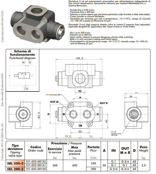 OMFB PNEUMATICKÝ PREPÍNACÍ VENTIL 3/2 1-3/4"