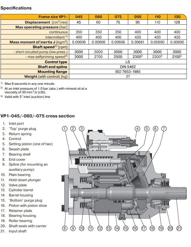 - Typ: séria VP1 (axiálne piestové čerpadlo s premenlivým zdvihovým objemom)