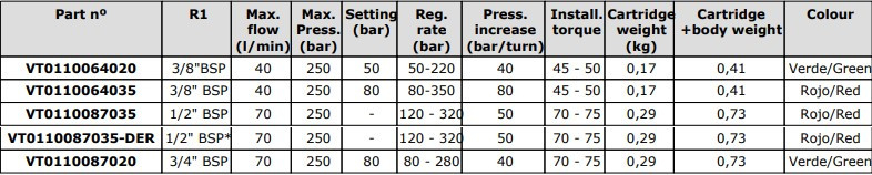 - Typ: In-line poistný ventil (control screw)