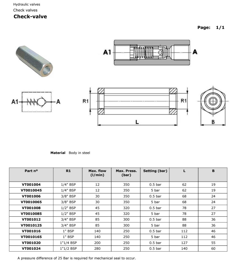 VT001006 spätný ventil zabezpečuje v hydraulických systémoch voľný prietok v jednom smere a zároveň zabraňuje spätnému prietoku. Spoľahlivou ochranou prietoku a udržiavaním tlaku prispieva k bezpečnej prevádzke systému a je odporúčaný pre bežné hydraulické aplikácie.